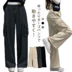 カーゴパンツ レディース ロングパンツ ウエストゴム ス
