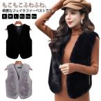 送料無料 フェイクファー ノーカラージャケット ジレ ジ
