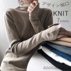 ハイネックインナー レディース ニット ハイネック セーター ニットトップス インナー リブニット ストレッチ デザイン袖口 袖長い ベーシックカラー ニットソ
