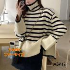 ハイネックニット ナチュラル ベーシック ざっくり ボトルネック ボーダーニット ボーダー柄 プルオーバー