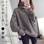 ニットセーター ボーダー柄 レディース ニット タートルネック セーター ゆったり ニットセーター ハイネック ボーダー柄セーター カジュアル