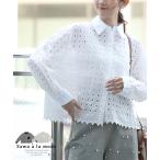 商品名: 花浮かぶパンチングレースのコットンシャツブラウス