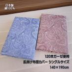 やわらかな肌触りで吸湿性の良い120本ガーゼ使用の肌布団カバーです。120本ガーゼとは、1平方インチ(タテヨコ25.4mm)に118本の糸を使用したガーゼ生地を通常120本ガーゼといいます。市販されているガーゼ生地を使用した肌掛け布団用カバーには、100本ガーゼと120本ガーゼがありますが、糸の本数の多い120本ガーゼのほうがしっかりとした生地となります。このカバーの裏側は白無地となります。カバーの内側四隅ヒモ付きです。