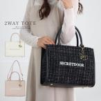 ・レディライクな印象のツイード素材トートバッグ。・開閉はファスナーになっていますが、サイドが開いているのでペットボトルなどがサッと取り出せて便利です。・内側にはオープンポケットとファスナーポケット1つずつ付いています。・500mlのペットボトルが収納可能なサイズ感。・ショルダー紐は取り外し可能で2wayでお使いいただけます。・取り外し可能なゴールドのロゴチャームが華やかなアクセントに。・ガーリースタイルから綺麗めスタイルまで様々なスタイルに合わせていただけます。
