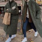 ロングコート レディース アウター コート S M L XL アーミーグリーン 緑 ブラック 黒 フードなし ポケット付き スタンドカラー キルティング ロング丈 ロング ミドル丈 ミディ丈 膝下 冬 防寒 防風 あったか フェミニン ナチュラル カジュアル きれいめ きれカジ クール スタイリッシュ かっこいい モード 定番 万能 着回し 王道 シンプル ベーシック ストレート ゆったり ゆる ルーズ オーバーサイズ 体型カバー 着やせ 休日 デート お出かけ 通勤 OL 通学 学生 韓国 オルチャン