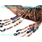 ウッド、ココナツビーズとトンボ玉のナチュラル感がとってもいい感じ!!個性的なメガネチェーンです。サングラスにもピッタリ☆ 4色からお選び下さい。