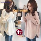【キーワード】ニットセーター ゆるセーター 大きいサイズ ゆったり 体型カバー チュニック ニット セーター Vネック 長袖 大人 ロングニット トップス 秋冬 シンプル