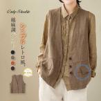 ベスト ジレ レディース 前開き ノーカラー コート アウター ジャケット ジレベスト トップス Vネック おしゃれ 新作 春 夏 秋 綿麻 綿 コットン レトロ ノースリーブ ボタン シンプル デ