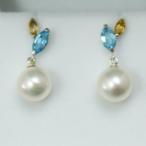 あこや真珠7mm-7.5mmホワイトゴールド製半貴石のパールピアスです。