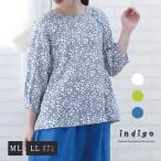 #七分袖 プルオーバー ブラウス プリント 家庭洗濯 綿100% コットン M L LL 大きいサイズ
