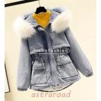 モッズコート レディース デニム ファー 裏ボア コート アウター 冬 防寒 フード付き