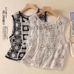 トレンドの透かし編みでインナーとのレイヤードスタイルを楽しめるレースベスト。