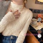 ジャカード編みと波模様が存在感と放つプチハイネックニットトップス