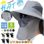サファリハット ゴルフ バケットハット 帽子 UPF50+ メンズ レディース 男女兼用 フェイスカバー メッシュ 通気性 あご紐付