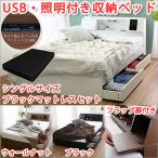 収納付きベッド シングル 収納ベッドシングル ポケットコイルマットレスセット USB・照明・フラップ扉付 ブラックマットレス コンセント付きベッド