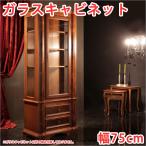 ガラスキャビネット 木製 ガラスキャビネット おしゃれ ガラスキャビネット 引出し アンティーク調 完成品アンティーク調家具 幅75cm