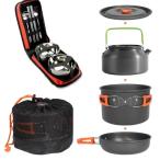 クッカーセット キャンプクッカー ケトル キャンプ鍋 クッキングセット アウトドア 調理器具 鍋セット ソロ 2人 3人 キャンプ用品 やかん アルミ