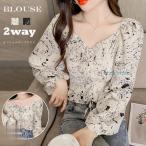 2way ス シャーリングボリュームスリーブ 肌見せス 薄手 シャツブラウス 長袖