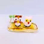 ふくろう2人ベンチ(ミニ)茶/白のガラス細工の置物です。