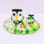 ふくろう花台ペア(L)緑のガラス細工の置物です。