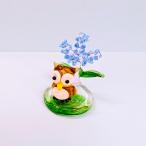 ふくろうとラベンダー台(S)のガラス細工の置物です。