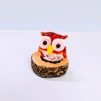 ふくろう切り株木台(S)赤のガラス細工の置物です。木台はポリ製です。