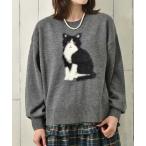 ふわふわな毛並みが愛らしいネコが大きくデザインされたニットプルオーバー。