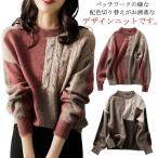 アシメ配色×編み柄切り替えニット セーター 長袖 アシン