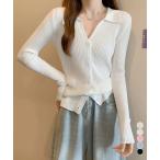☆Vネックと襟付きのデザインが小顔に見せるニットトップス
