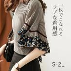 切り替え ニット カットソー フレア袖 クルーネック 韓国風