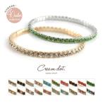 ラインビジューを規則正しく並べたブレスレットは、伸縮性をもたせ着脱しやすさに配慮しています。着けるだけで上品さをプラスしてくれる華奢なデザインが腕時計との相性も良く、バングルなどとの重ね付けもおすすめです。