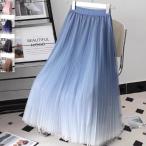 グラデーション チュールスカート 夏 ウエストゴム 膝丈