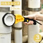 ストラップ部分でパイプ配管などを締めつ付けて回すことができるベルトレンチ。