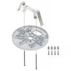 【仕様】 ●天井ボードに、ネットワークカメラの取り付けができます。 ●感知器や非常用照明器具などの取り付けができます。 ●天井ボード張り付け後に施工する為、天井ボードの目地がズレた場合でも簡単に施工できます。 ●スプリング弾性で、簡単、確実に支持できます。 ●カメラック ●二重天井用 ●許容静荷重:19N(2kgf) ●適合: ・天井ボード厚(mm):9〜24 ・開口径(mm):φ100 ●本体材質:ABS樹脂