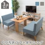テーブル:(約)幅110×奥行70×高さ65cm、ソファ(2P):(約)幅105×奥行64.5×高さ77×座面高42cm ダイニングテーブルセット おしゃれ 4人用 3点セット 2Pソファー×2 ダイニングセット グレー ブルー