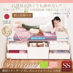 大容量 引き出し収納付き セミシングルベッド マットレス付き 薄型スタンダードボンネルコイル 白 日本製ヘッドレスショート丈ベッド 組立設置付 ダークブラウン ナチュラル 国産 ホワイト