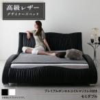 おしゃれ マットレス付き 黒 セミダブルベッド プレミアムボンネルコイル 高級レザー・デザイナーズベッド ブラック 白 ホワイト
