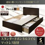 シングル:Aタイプ 白 連結ベッド スタンダードボンネルコイルマットレス付き 組立設置付 収納付きベッド ダークブラウン ホワイト ナチュラル