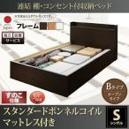連結ベッド シングル:Bタイプ 白 スタンダードボンネルコイルマットレス付き 収納付きベッド 組立設置付 ダークブラウン ホワイト ナチュラル
