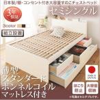薄型スタンダードボンネルコイル マットレス付き セミシングルベッド 白 国産 日本製 大容量収納 収納付きベッド 引き出し収納 組立設置付 ダークブラウン ナチュラル ホワイト