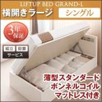 シングルベッド マットレス付き 薄型スタンダードボンネルコイル 組立設置付 横開き/深さラージ 大容量収納 白 跳ね上げ式ベッド ダークブラウン ホワイト ナチュラル