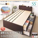 収納付きベッド マットレス付き 白 組立設置付 引き出し収納 セミシングルベッド 薄型スタンダードボンネルコイル ダークブラウン ナチュラル ホワイト