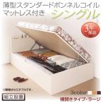薄型スタンダードボンネルコイル 大容量収納 組立設置付 シングルベッド マットレス付き 白 横開き/深さラージ 跳ね上げ式ベッド ダークブラウン ホワイト ナチュラル