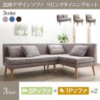 3点セット(2P+1P2脚) 北欧 おしゃれ ダイニングソファー ネイビー ブラウン グレー