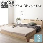 コンセント付き セミダブルベッド ローベッド フロアベッド マットレス付き 2層ポケットコイル ナチュラル 棚付き 茶 すのこ ブラウン 宮付き