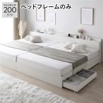コンセント・宮棚・引き出し付き 収納付きベッド ワイドキング200S+S ホワイト ベッドフレームのみ ワイドキングサイズベッド200S+S 収納付き