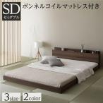 マットレス付き 和モダン コンセント宮棚付き ボンネルコイルマットレス付き ローベッド セミダブル セミダブルベッド ブラウン