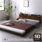 マットレス付き ローベッド すのこ ヴィンテージブラウン 宮棚・コンセント付 2層ポケットコイル 茶 フロアベッド セミダブルベッド