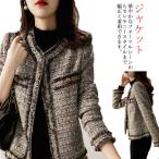 フェミニンなツイード仕立てのノーカラーツイードジャケット