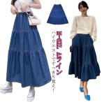 送料無料 3段切替フレアー感 ギャザー ティアード フレ